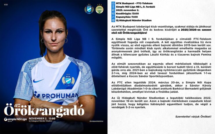 Simple Női Liga meghívó – MTK Budapest – Ferencvárosi TC