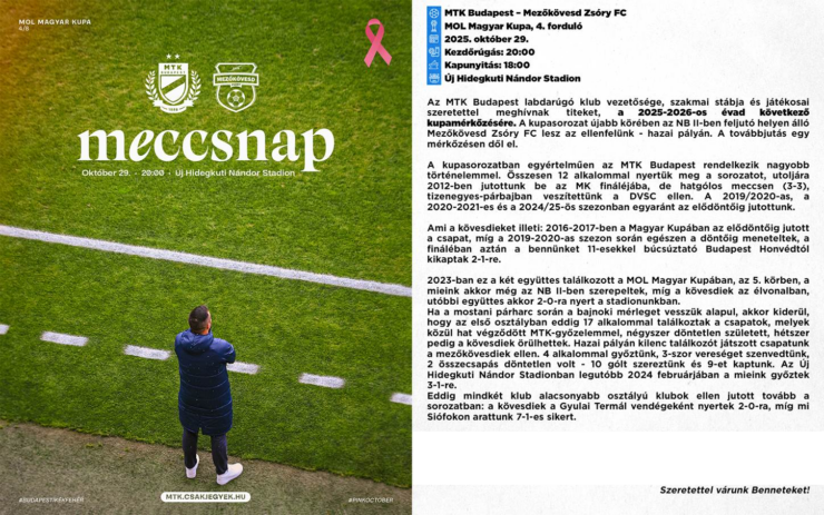 A csapat ellenfele a Mezőkövesd Zsóry FC lesz.