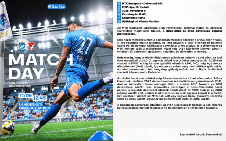 A találkozó helyszíne: Új Hidegkuti Nándor Stadion (1087 Budapest, Brüll Alfréd u. 2.)